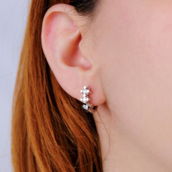 Bu küpe, üç adet zarif pırlantadan oluşan Tria tasarımı ile benzersiz bir zarafeti temsil eder. Pırlantalar, muhteşem bir parlaklık sunarken, zarafetinizi ve stilinizi vurgular. Bu özel küpeler, günün her anında şıklığınızı tamamlamak için tasarlandı.
